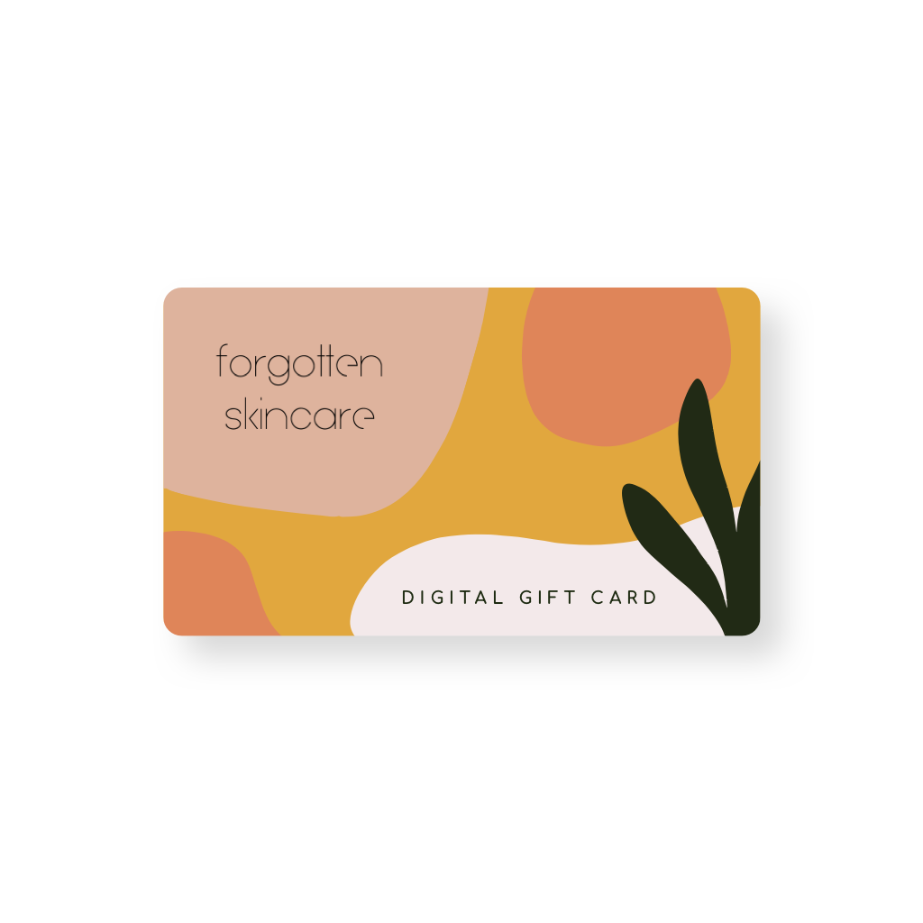 Available for all forgottenskincare.com purchases. Forgotten Skincare Digital Gift Cards are delivered to your email and ready to forward.